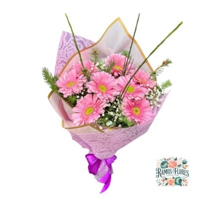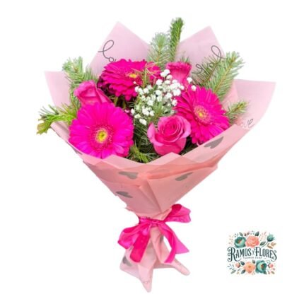 Ramo Primaveral Rosa + Gerbera + flores de Temporada