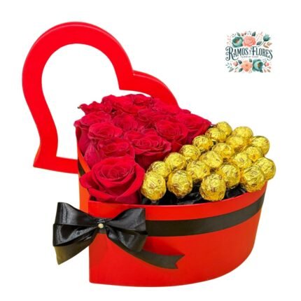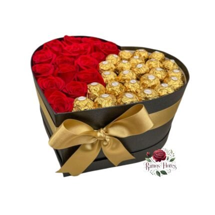 Caja 12 Rosas Rojas + Bombones Ferrero