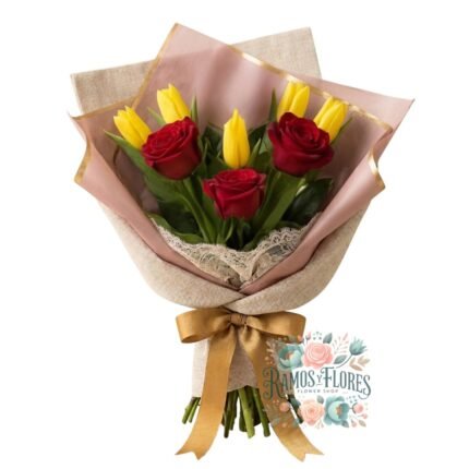 Ramo de 10 Tulipanes + 4 Girasol
