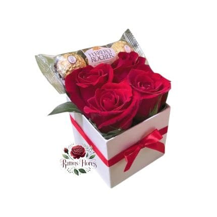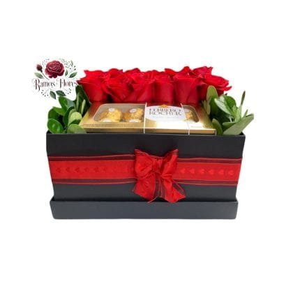 Box Cuadrado 12 Rosas + Bombones Ferrero