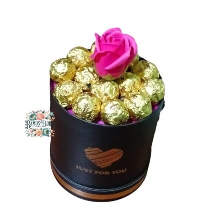 Box Cilindro 1 Rosa Eterna De Jabón + 13 Bombones