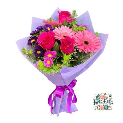 Ramo Primaveral + Rosas + gerbera + Flores de Temporada