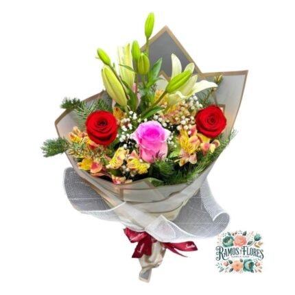 Ramo Primaveral de 1 Rosa + Lirio + Flores de Temporada