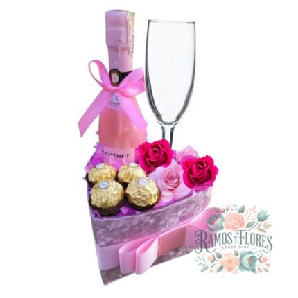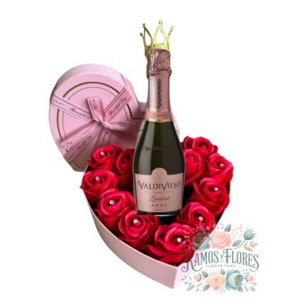 Box Corazón 16 Rosas + 12 Bombones + Espumante