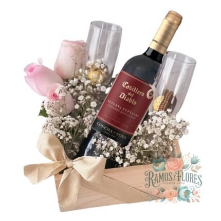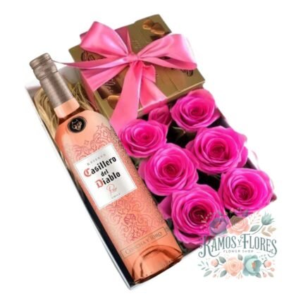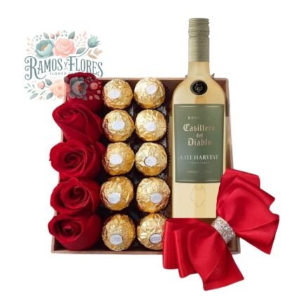 Box 12 Rosas + Bombones Ferrero + Botella Espumante 187ml