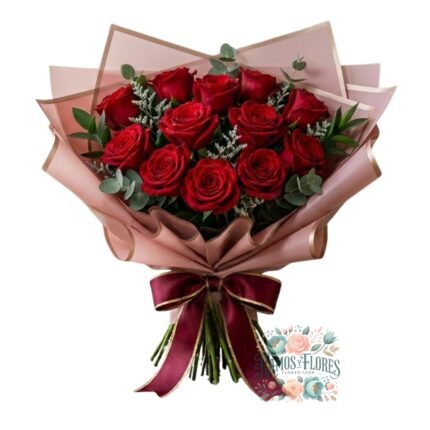 Ramo 12 Rosas Rojas + Eucalipto + Bombones Ferrero