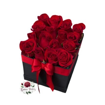 Box Cuadrado 16 Rosas + Bombones