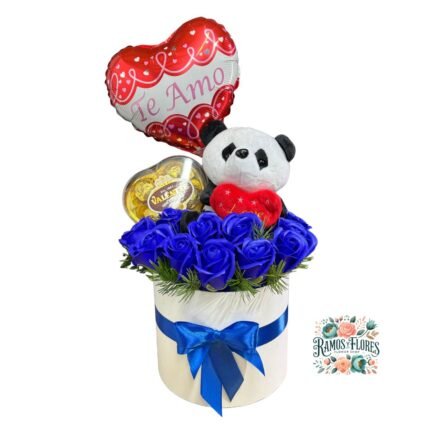 Box Cilindro 11 Rosas Eternas De Jabón + Peluche + Bombones + Globo