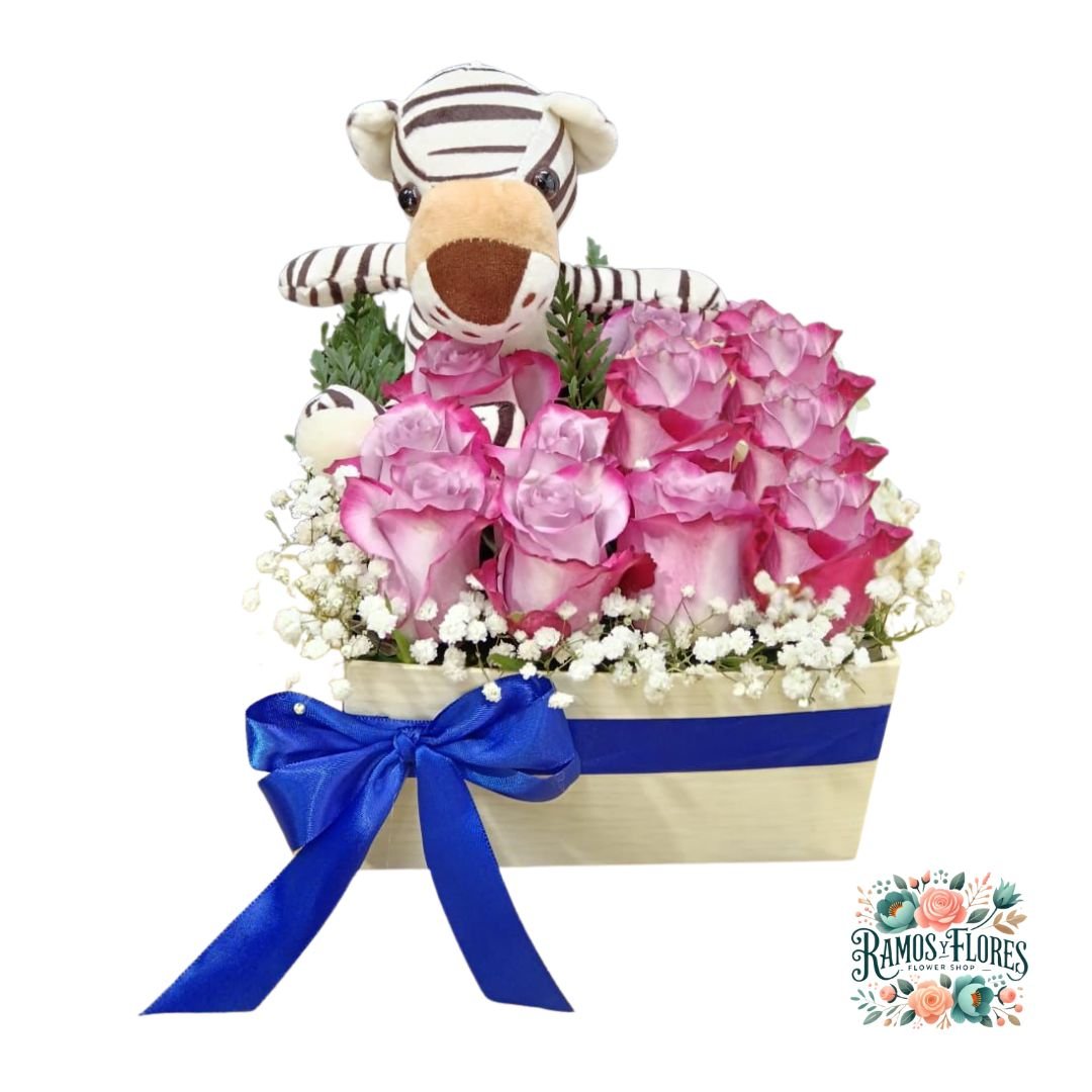 Box Cuadrado 12 Rosas + Peluche