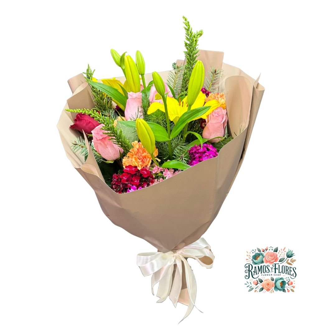 Ramo Primaveral de 4 Rosas + Lirios